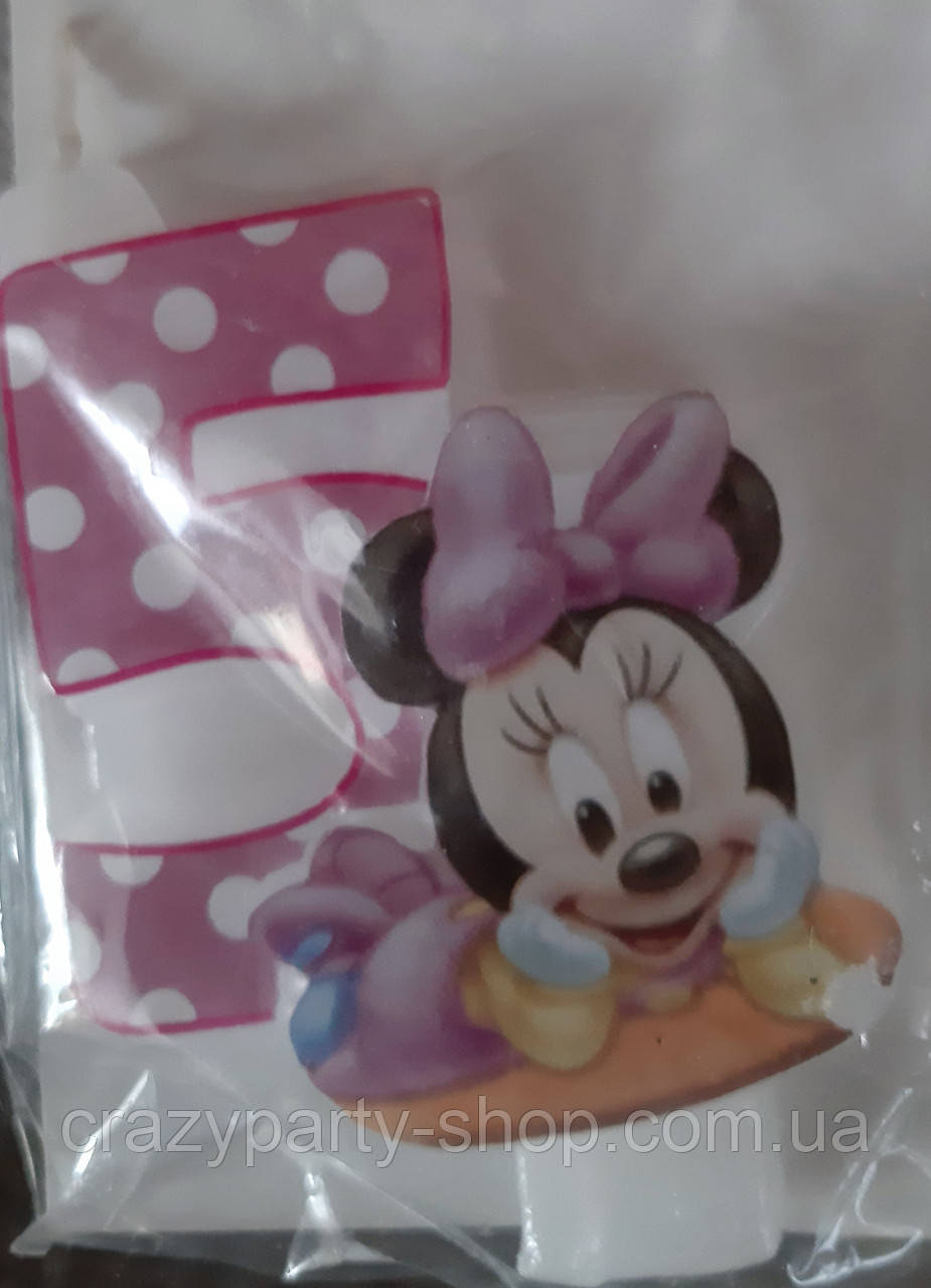 Свічка цифра 5. з колекції Мінні маус . Рожева.